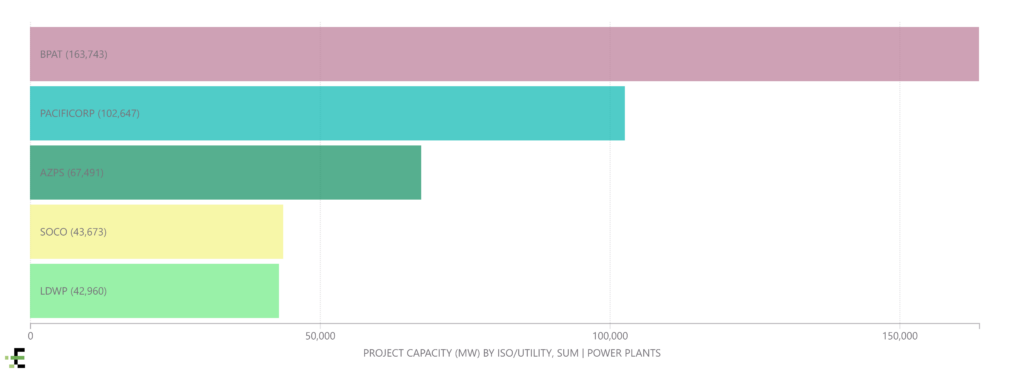 Figure 1- Enverus P&R Project Tracking: Most planned capacity by utility queue