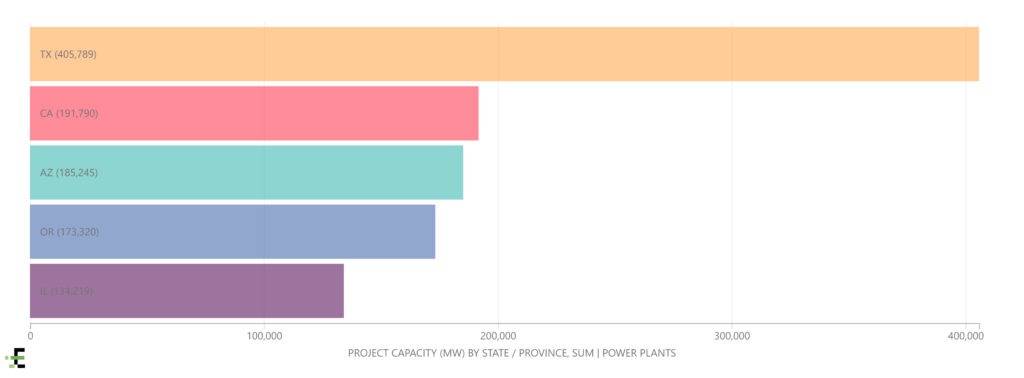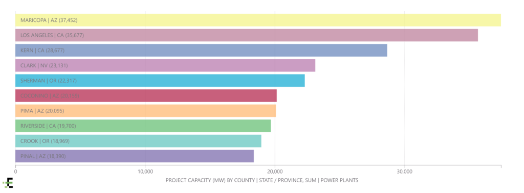 On a state level, Arizona has the third most total planned capacity in the nation, behind only Texas and California. It has the third most planned storage capacity and the second most planned solar capacity.