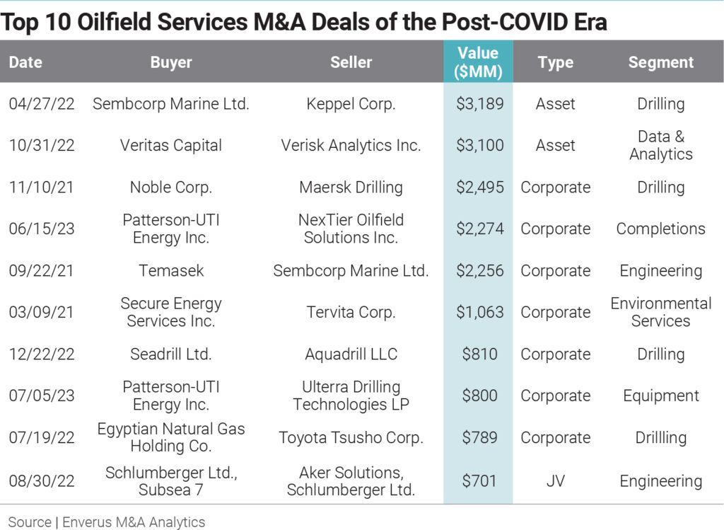 As bold as the Patterson-UTI deals are, whether they will spawn imitators remains to be seen. The OFS acquisition market has been stagnant in 2023 with just 39 transactions announced during 1H23 compared with 125 transactions in 1H22, according to Enverus M&A Analytics. The 15 deals announced in Q2 amount to the lowest quarterly total in more than a decade.