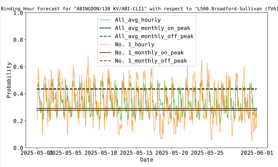 The constraint forecasting tool provides probabilities that a constraint binds due to a weather driven event. Hourly probabilities for the forecast horizon are available via API.