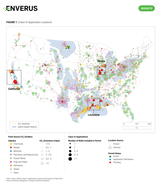 CCUS has gathered impressive momentum over the past two years as companies seek to exploit the technology’s economic and environmental benefits. In the U.S., the number of Class VI well permit applications for permanent geological CO2 storage surged by 40, or 800%, between May 2021 and May 2023, owing largely to enhancements to the 45Q tax credit. Despite the rise, the EPA and company websites provide limited transparency on proposed injection well locations.