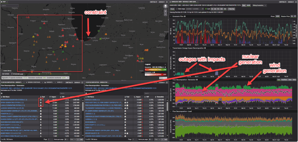 By integrating data from both PJM and MISO, we can map generation flow from the source to the sink side of the constraint. This holistic view reveals how changes in generation and outages in one market can ripple through to the other. Diving into more granular details of when source and sink side generation changes can help us better understand how small changes in active constraints can result in more confidence when it may bind stronger or weaker.