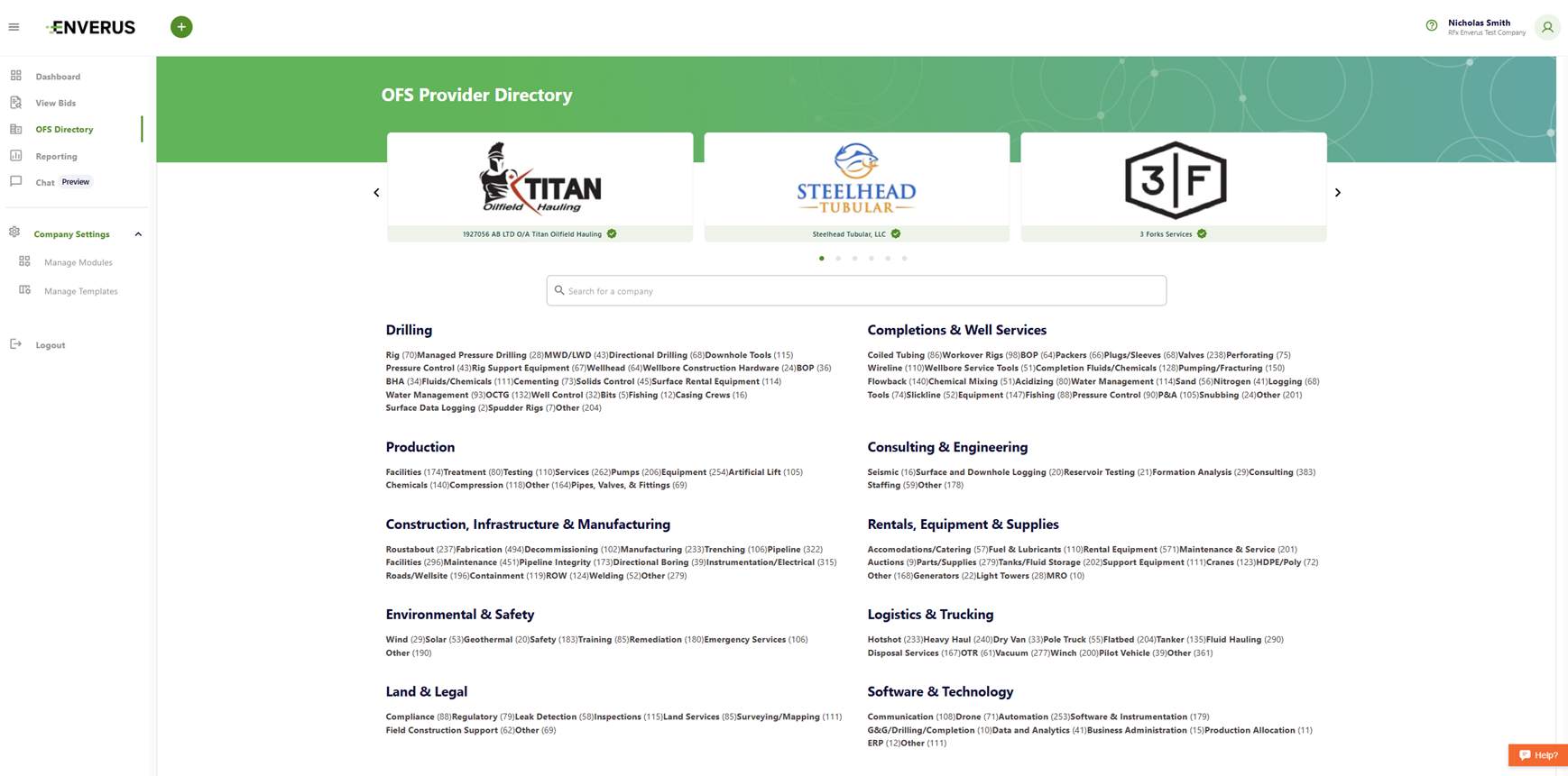 Enverus RFx includes an expansive OFS Directory of thousands of vetted suppliers across North America. You can filter by service category and basin footprint, ensuring you find the right supplier for the job, even in unfamiliar regions.