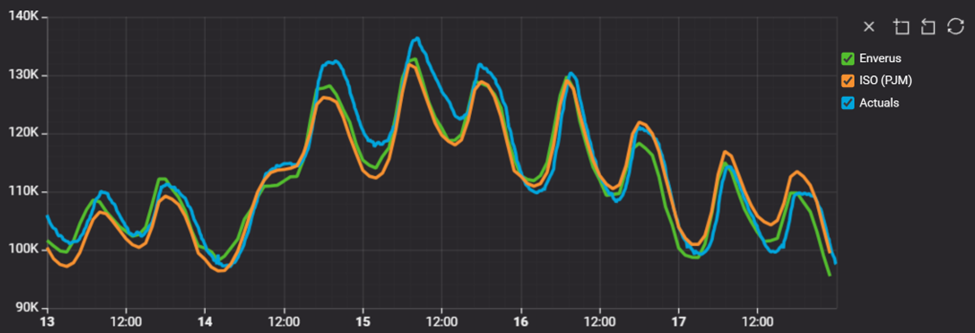 As exemplified below, Enverus outperformed PJM forecasts, including peak hour performance during the highest stress intervals.