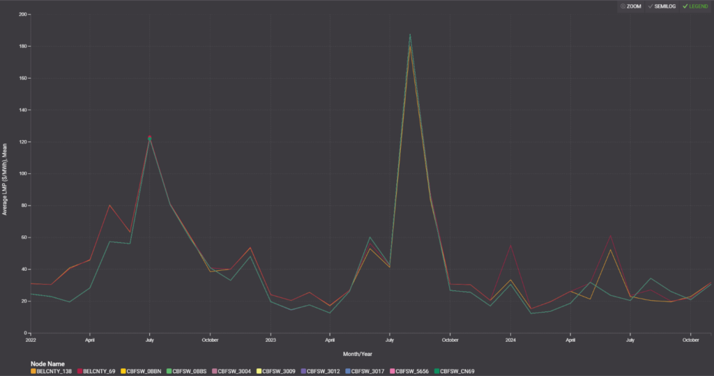 Evidently, the offtake capacity backed by renewable sources is readily available or soon to be within our grid. The subsequent challenge in taking the leap into a clean power backed load center is understanding what you will need to pay for said power. To find the cheapest power, it’s crucial to focus on pricing nodes with not only the lowest average locational marginal prices (LMPs) over the past five years but also the lowest minimum daily LMPs during that period. This ensures we are focusing on areas where the power prices are the lowest and again, have the power to support high load demands. By assessing pricing alongside these other factors, you can ensure the economic success of leveraging renewable power sources for your facility.