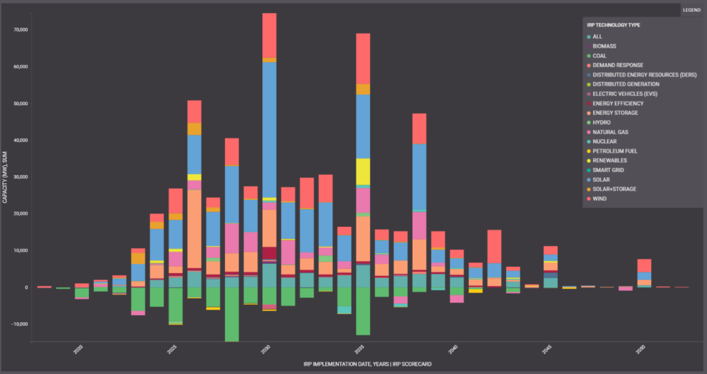 Moreover, utilities are setting steep goals that continue to influence the clean energy transition. Based on integrated resource plans (IRPs), documents directly from the utilities on their plans to alter their power mix up to 30-years in the future, utilities across the country have plans to increase the availability of solar, wind and storage in place of decommissioned traditional assets.