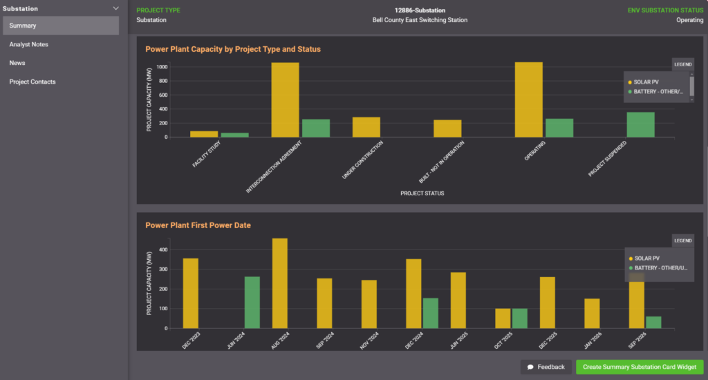 To further understand the power mix at each of these substations, we can dive deep into what is currently and planned to interconnect. The Bell County East Switching Station, which has fluctuated between 2000 and 4000 available MWs of withdrawal capability over the past year, is mainly interconnected to solar and storage plants. There are more than 1000 MWs of operating solar and storage at this point of interconnection already, with an additional 1,989 MWs planned over the next few years.