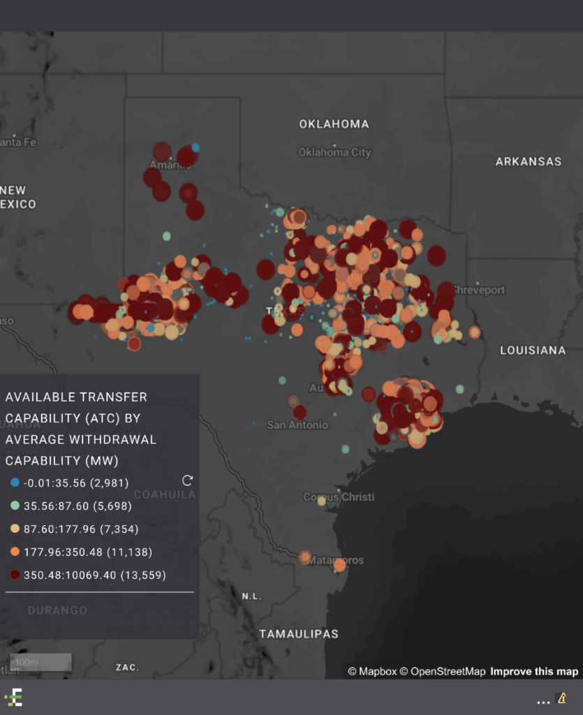 If we specifically focus on those utility territories in Texas, there are more than 300 buses across the grid that have had more than 1000 MWs of available withdrawal capacity over the past year.