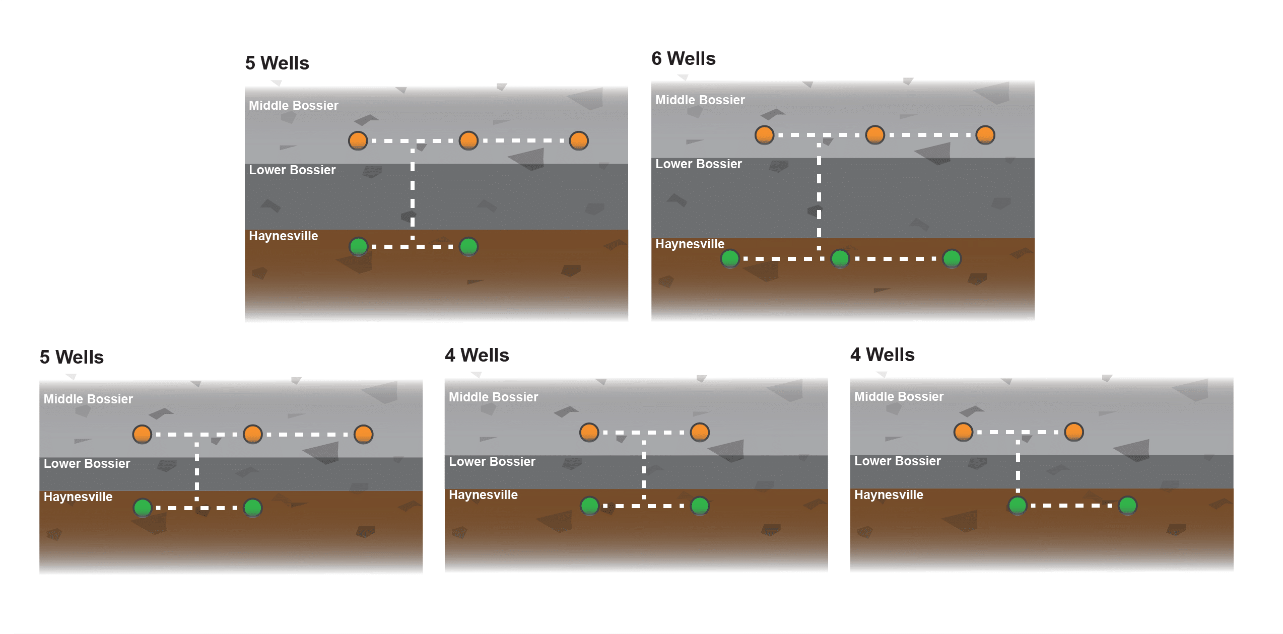 FIGURE 1 | Spacing Patterns of Haynesville-Middle Bossier Stacked Developments