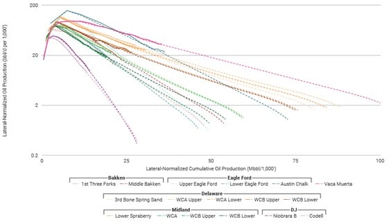 Perhaps the most exciting part of the Vaca Muerta story is that the play is well positioned to benefit from data-driven optimization using U.S. analogues; applying the hard lessons learned regarding completions, spacing and parent-child wells from U.S. plays to develop the Vaca Muerta in the most optimized way possible (Figure 3 and 4). Enverus’ industry leading analysis and tools for U.S. unconventional plays, whether it’s multivariate analysis or machine learning algorithms, can amplify available data and guide technical teams of engineers and geologists to an understanding of what works where, and why.