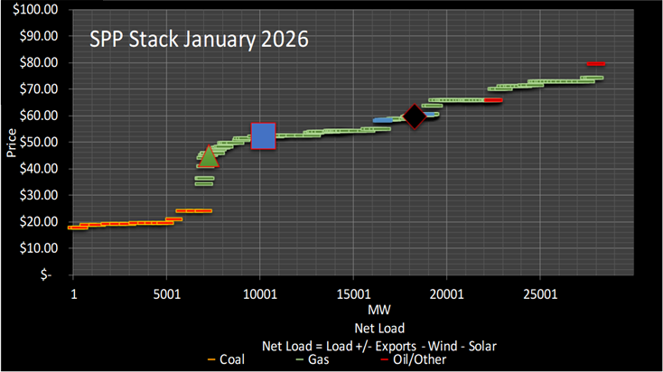 A 345 KV line outage near Cold Spring Corridor in MN from 01/22/26–03/06/26 with strong North Dakota wind generation relative to MISO North during strong demand in NSP, OTP is increasing the flow on element FARGO-SHEYNNE (230KV) in WAUE. It will be bullish for MN hub prices.