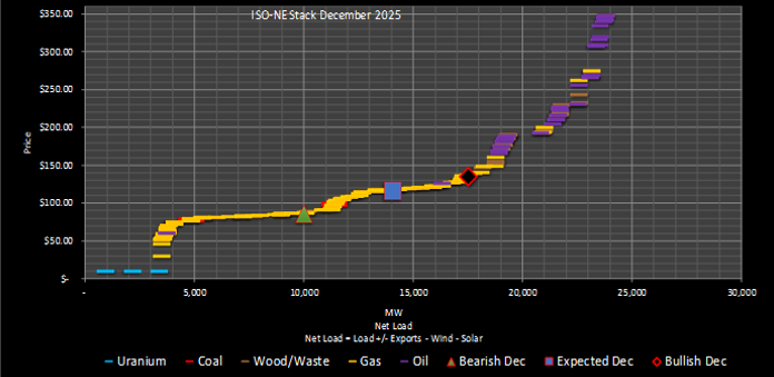 The impact of the injection of 1,200MW into Maine will drive the system energy cost lower but will also create the risk for more consistent price separation for the Maine region from the rest of the system. Congestion isn’t a major issue in ISO-NE, but we expect to see a bit more basis grow when this project is in service. 345-kV upgrades along the coast will help alleviate congestion risk but internal interfaces will still see higher loading.