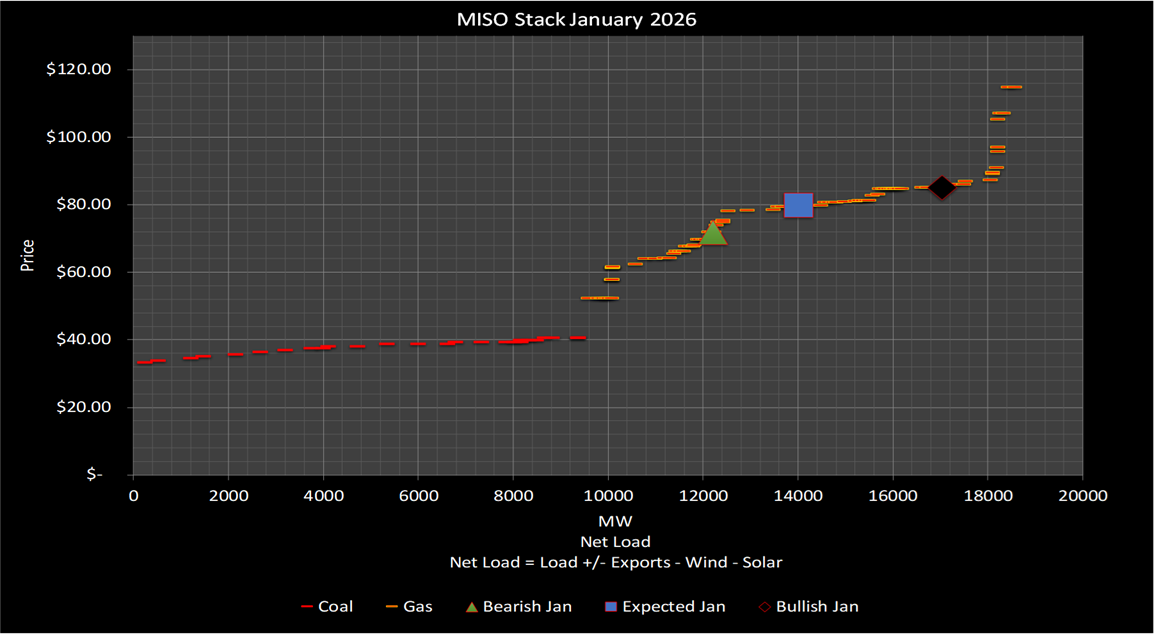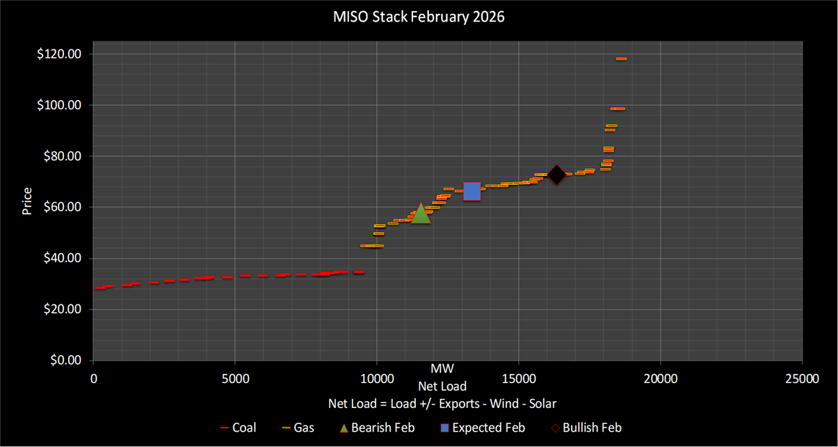The Braid-EFRN line will be taken out of service (1/23-1/30) which increases congestion risk for ELWO-GOOD and ideal conditions for strong shadow prices, Elwood & Jackson CTs online and elevated demand in Comed. When binding, it is bearish NIHUB.