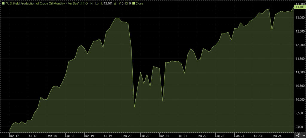 Achieving energy independence has been a cornerstone of Trump’s energy policy. U.S. crude oil production hit record levels during his first term and a second term could sustain this trajectory. Current production rates exceed 13.5 million barrels per day, with the U.S. accounting for 20% of global demand.