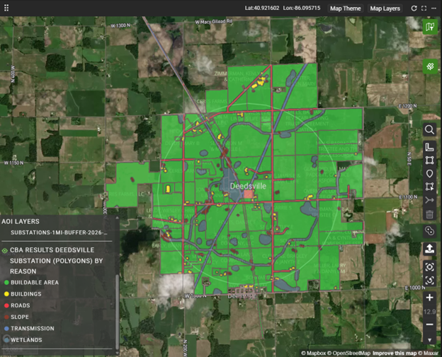 Using Indiana as a representative market, this analysis highlights how developers can move faster and with greater certainty by focusing capital on sites with manageable upgrade costs, scalable land positions, and durable hybrid economics. The workflow surfaces locations that support near term generation feasibility, long term storage value, and phased hybrid development while reducing development risk and avoiding oversubscribed interconnection points.