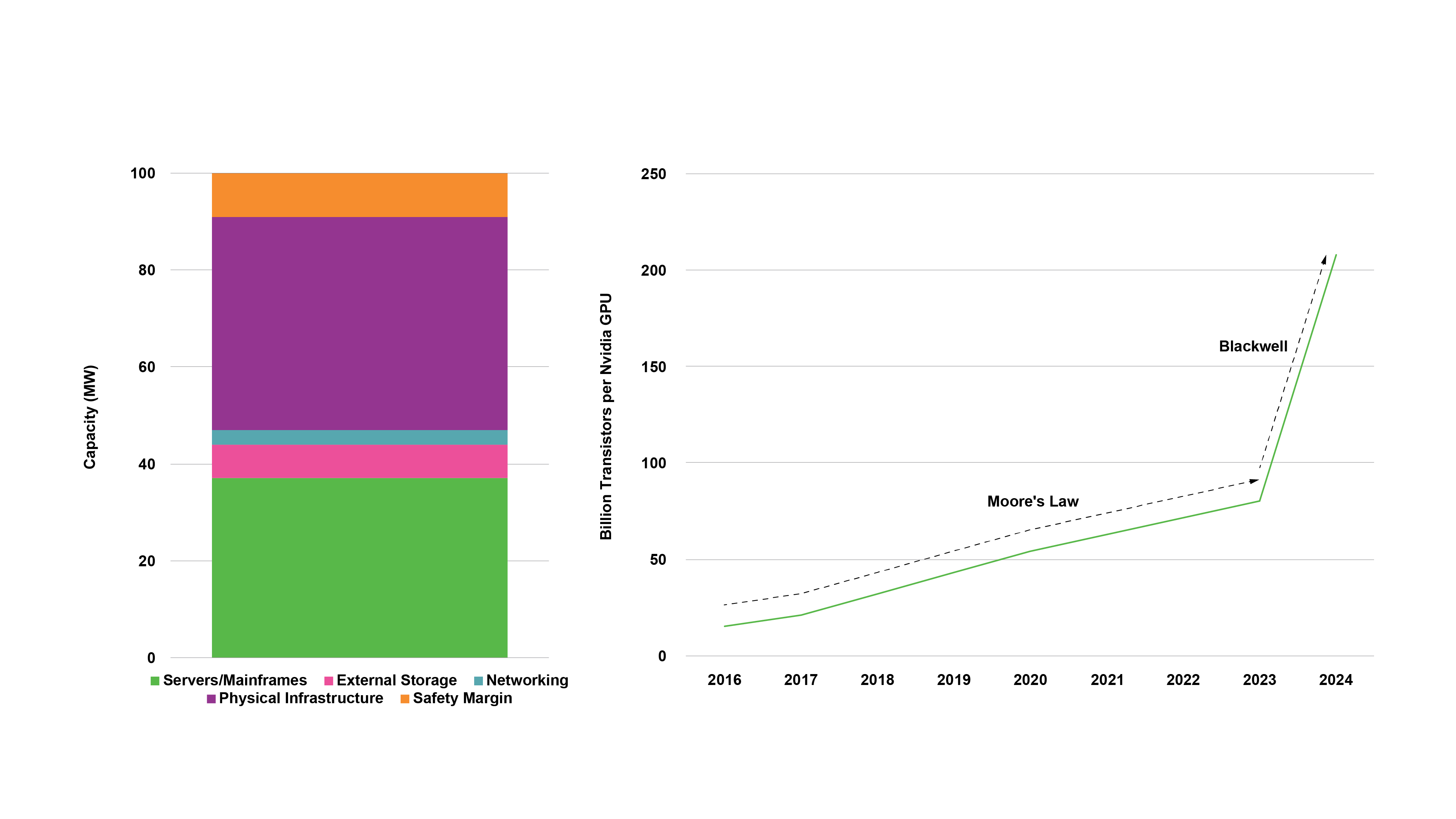 Up until 2023, new technology was advancing at a predictable pace, but Nvidia’s release of the Blackwell chips has really changed the game. These chips have more transistors, which means they can do things like training AI models twice as fast and running them five times faster, making them super efficient. This big improvement doesn’t just mean better performance; it also helps the environment by using less energy, matching up with the data center industry’s goal to be environmentally responsible.