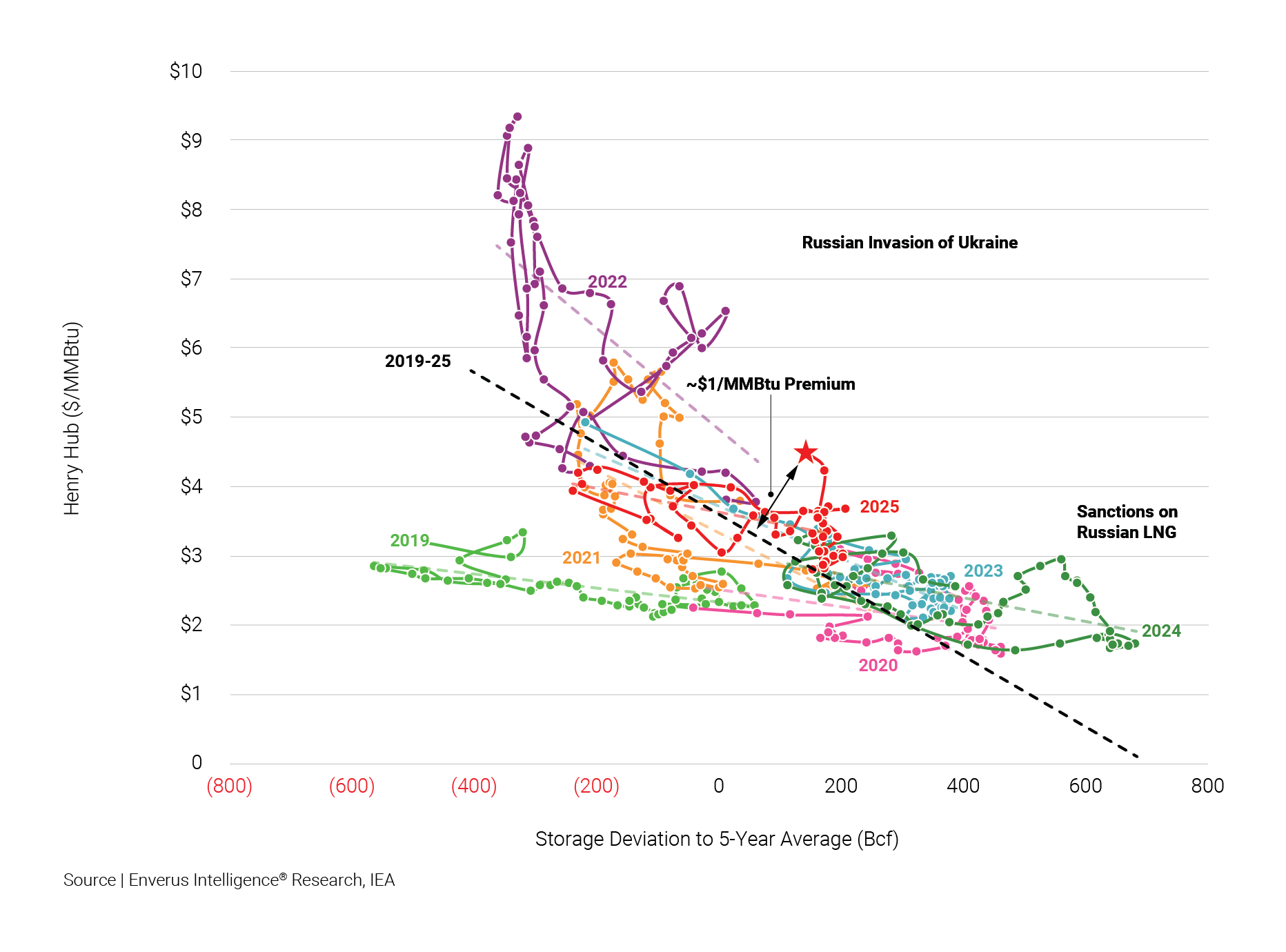 At the same time, gas-fired power generation is losing market share to coal at current elevated price levels, indicating demand-side weakness.