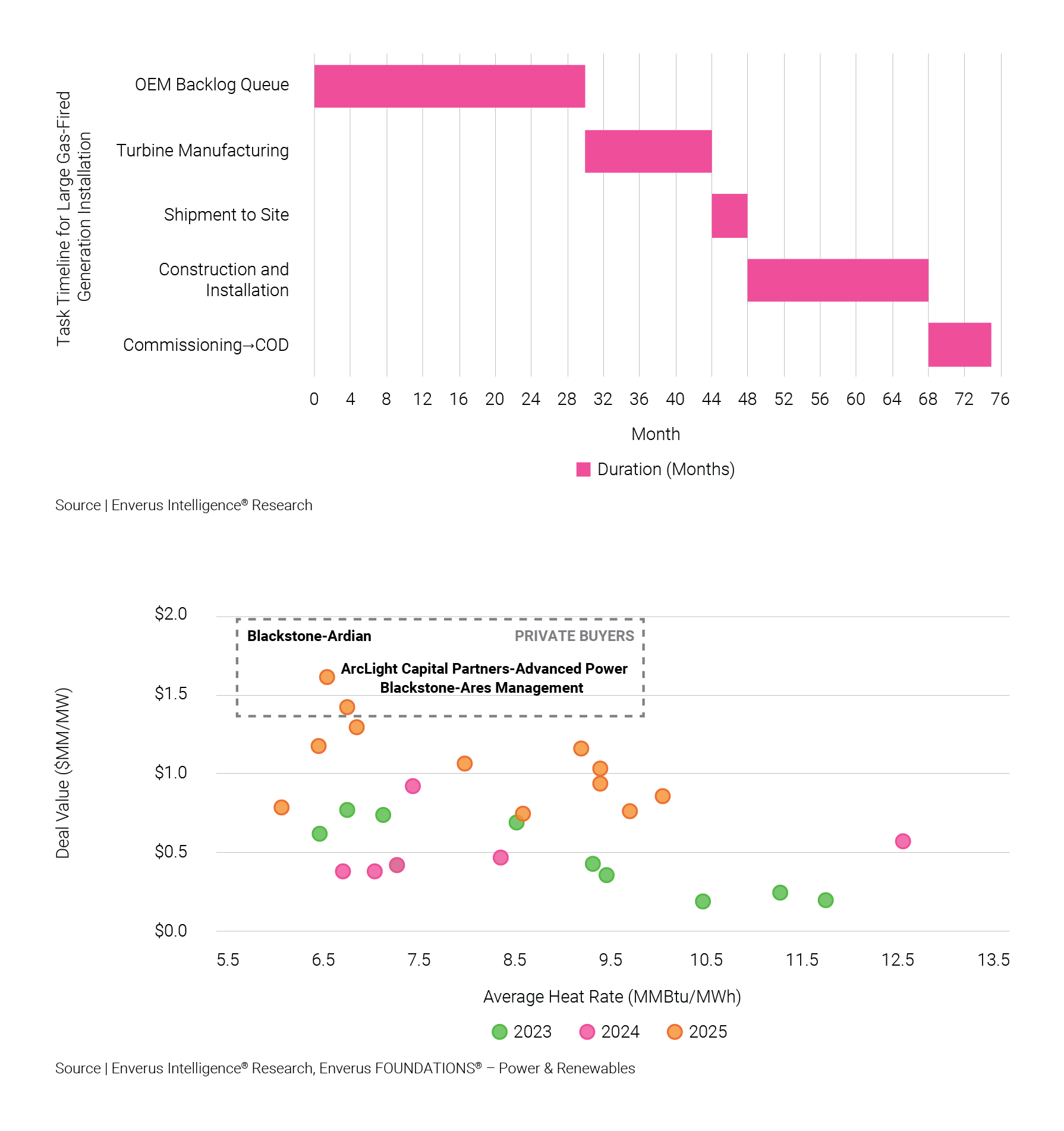 Demand for new baseload capacity, driven by accelerating load growth from data centers and electrification trends, has increased interest in both new-build and existing gas-fired generation assets. However, recent IPP earnings calls highlight significant cost inflation for new-build projects, with construction costs rising to $2-$3 million/MW, creating steep barriers to entry. Coupled with turbine delivery lead times of ~2.5 years and an additional two years for construction, new-build gas economics have become increasingly challenging for developers seeking to capitalize on near-term load growth.