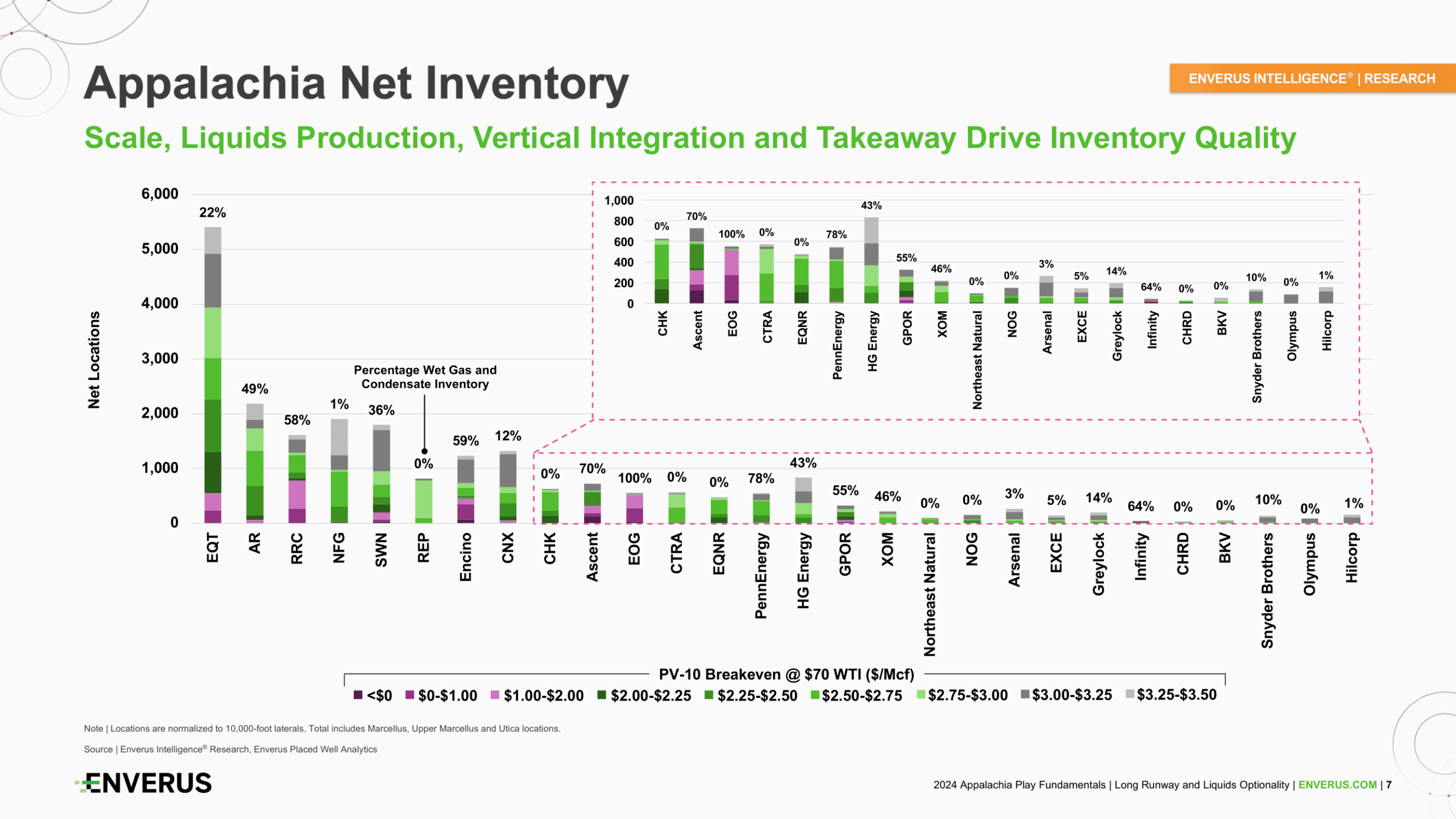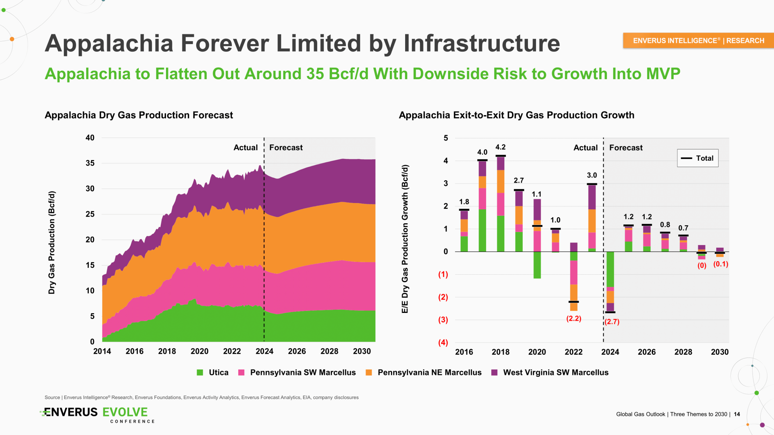 The basin is well understood in terms of resource opportunities and economics, from the NGL rich Marcellus gas play to Utica’s core dry gas play. Though avoided in recent years for its poor economics relative to other basins, operators are starting to return in small numbers to the western oil rich section of the Utica primarily on the Ohio side. And across the basin DUC inventory has been drawn down, which will likely result in increased drilling in 2025.