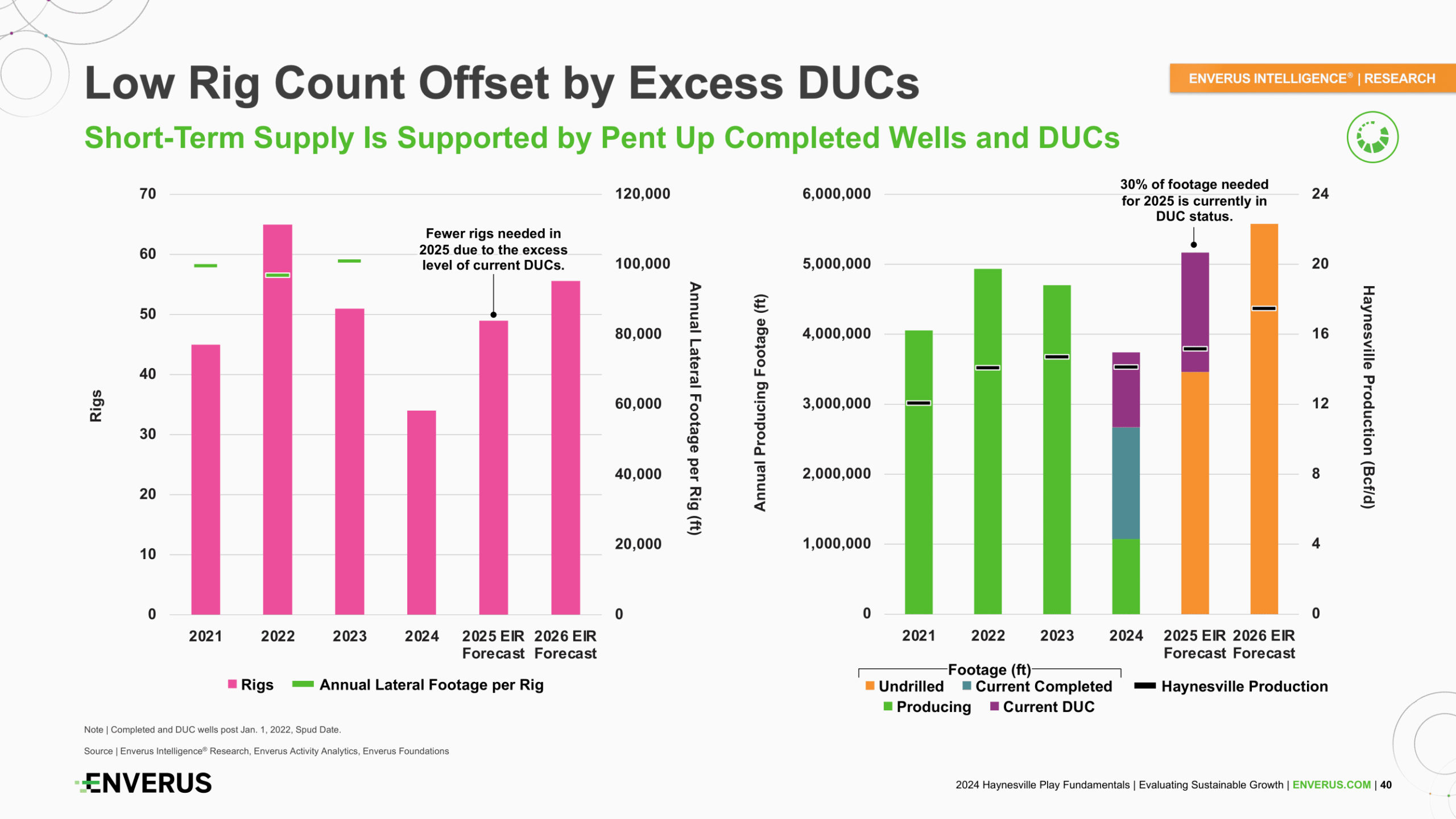 Expect Bakken development and production to continue holding steady in 2025. Activity has started to move out from the core; however, unlike other basins where operators resort to less productive fringe sections, tier-two acreage is looking just as good as tier one. And continuing to buck the trend of other basins where consolidation has thinned the ranks of operators, the Bakken is seeing DUC count being built back up by both public and private operators.
