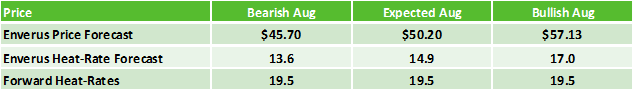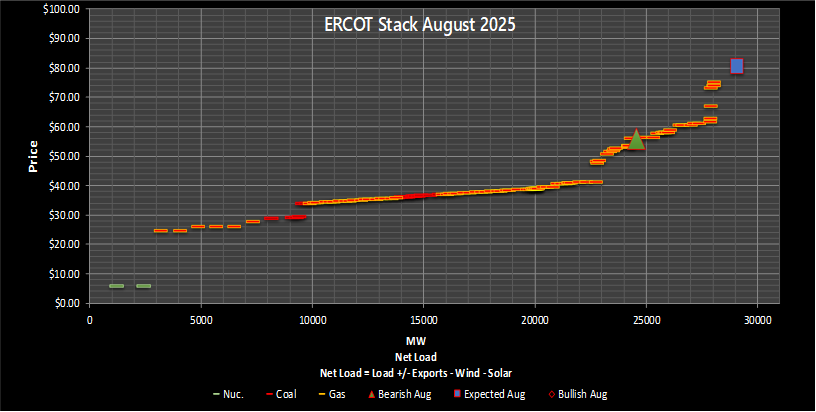 Our bullish scenario has us off the stack with scarcity prices if August is very hot with low wind generation.