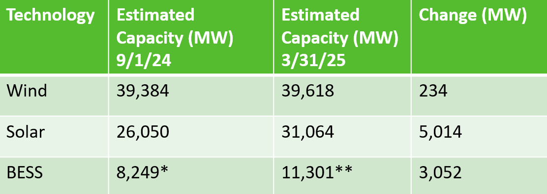 No major new storage or generation COD this summer; the deep solar and storage queues face delays, yielding fewer near-term additions.