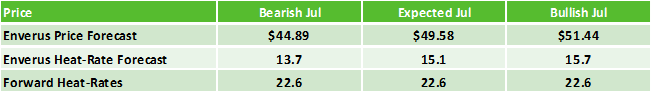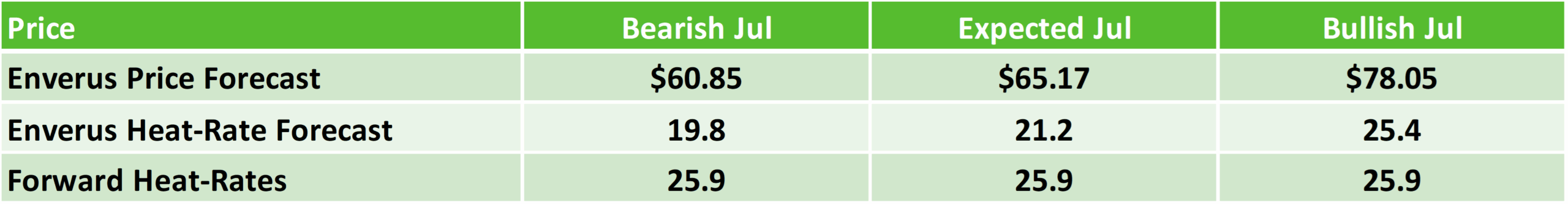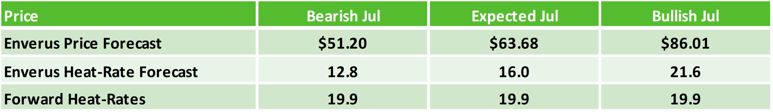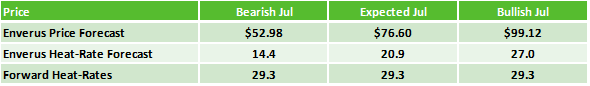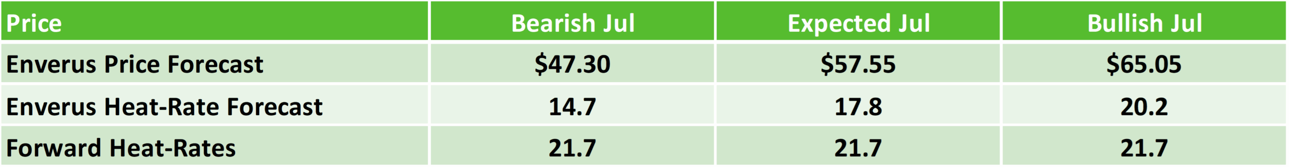 The Enverus Mid-C On-Peak (Heavy Load) shows heat rates for Julythat are bearish to the market.