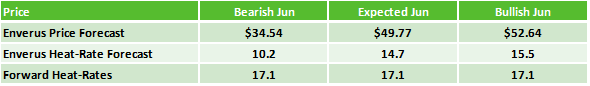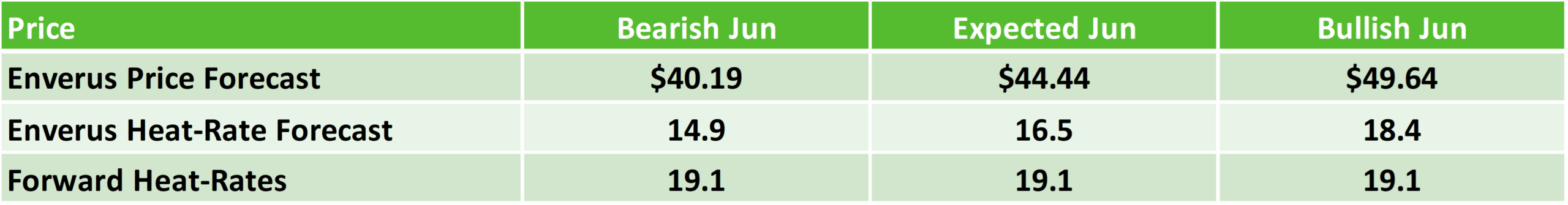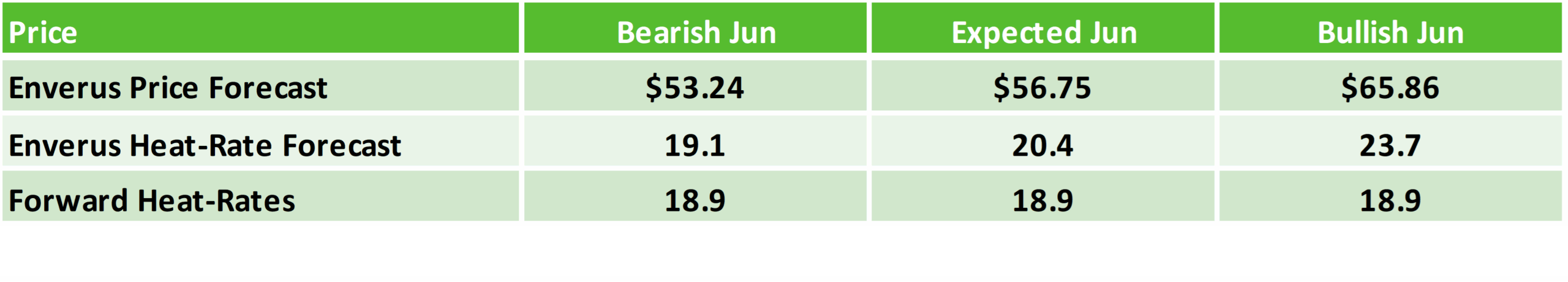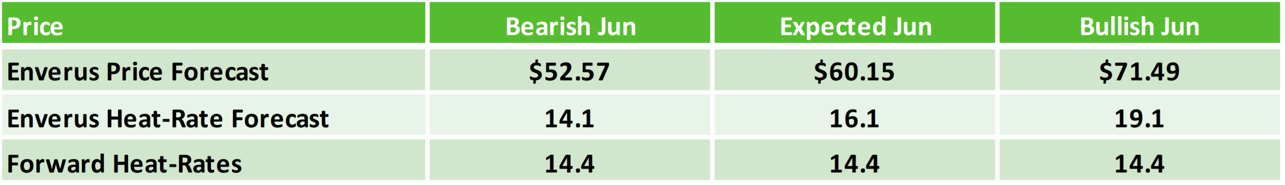 The Enverus Mid-C On-Peak (Heavy Load) shows heat rates for June bearish to the market.