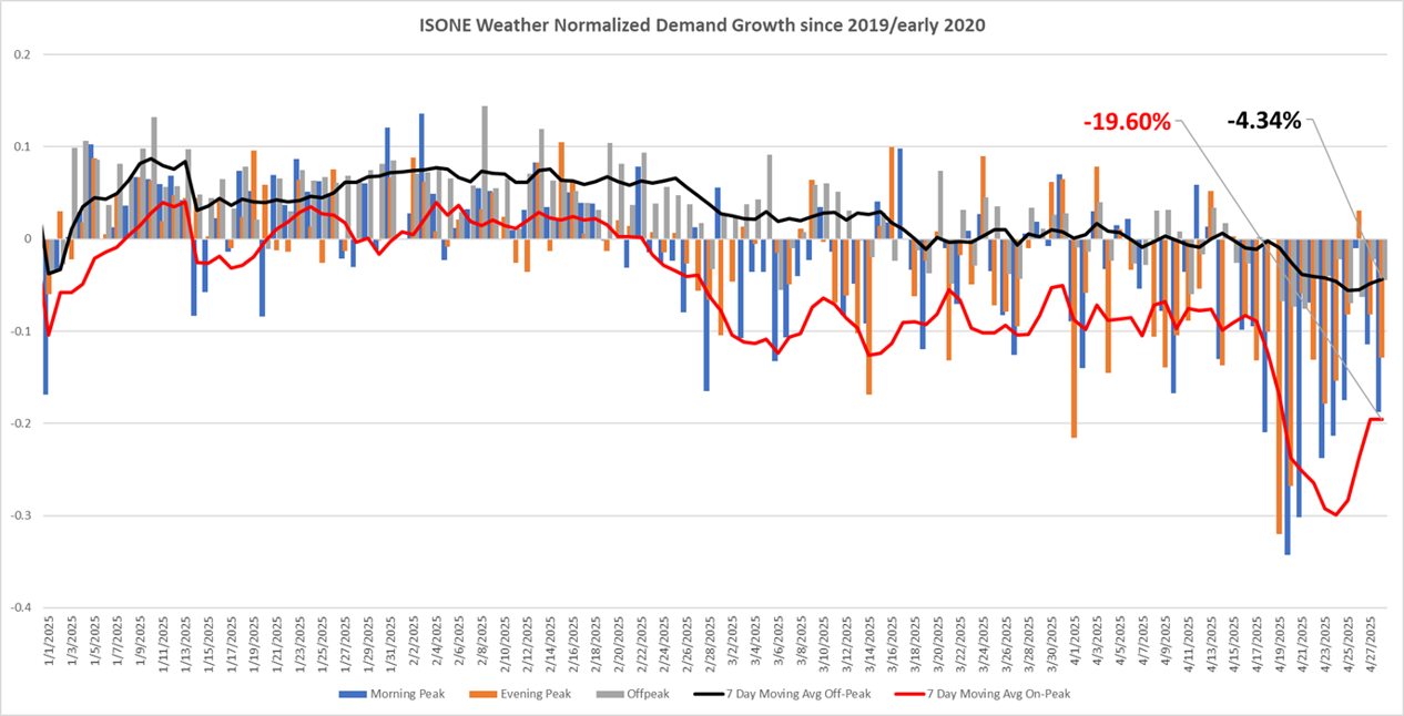 Vineyard Wind’s first 24 turbines (800 MW) online; Cranberry Pt (150 MW BESS) and Crosstown (175 MW BESS) COD in 2025; on-peak load growth ~2–3%. The summer in ISO-NE is expected to be cooler than average with short duration heat waves.