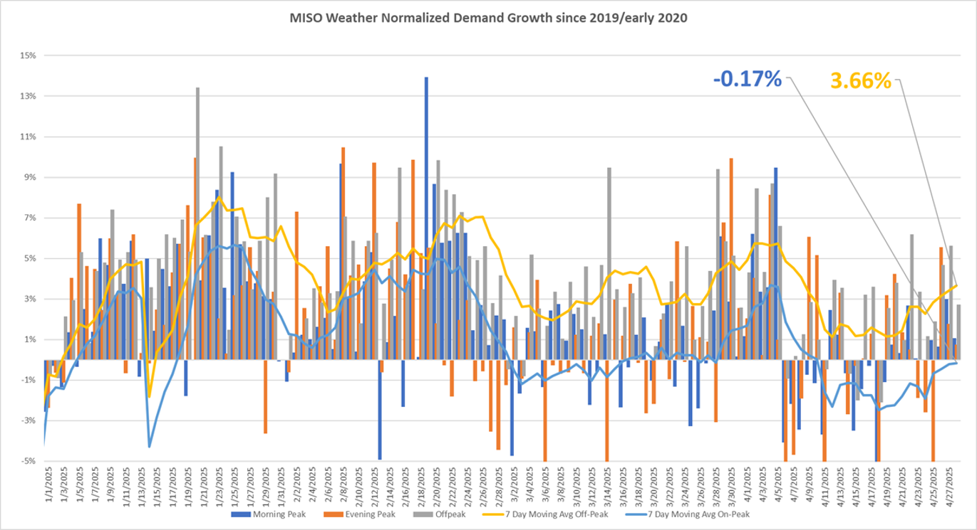 MISO projects 3–4% on-peak and 4–5% off-peak load growth under mild. The summer in MISO is expected to be cooler than average with short duration heat waves.