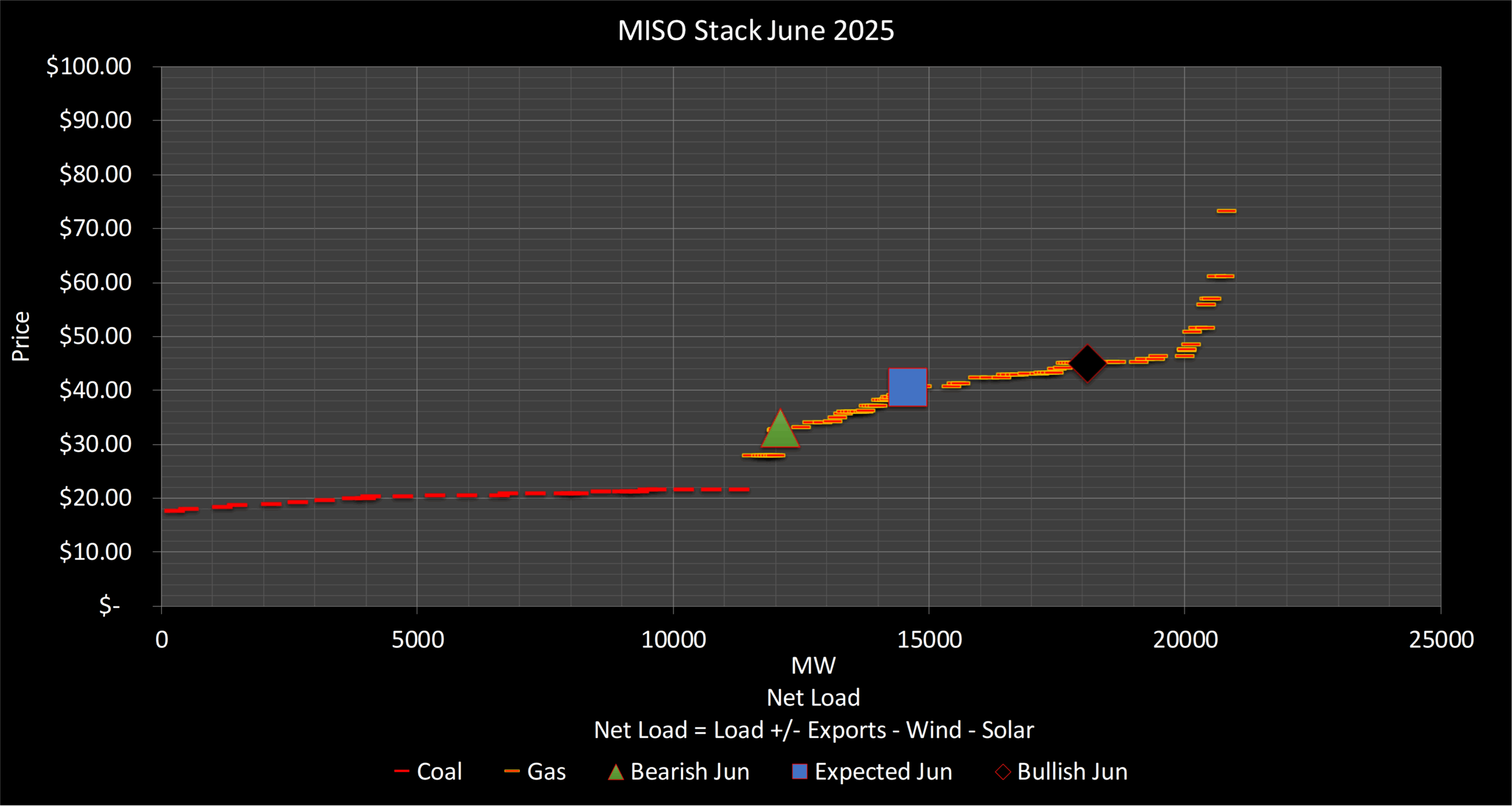 In June, our expected INDY HUB scenario remains on the flatter portion of the stack with our view for average demand. This means it’s going to take “heat wave” like events to move to our bullish scenario.