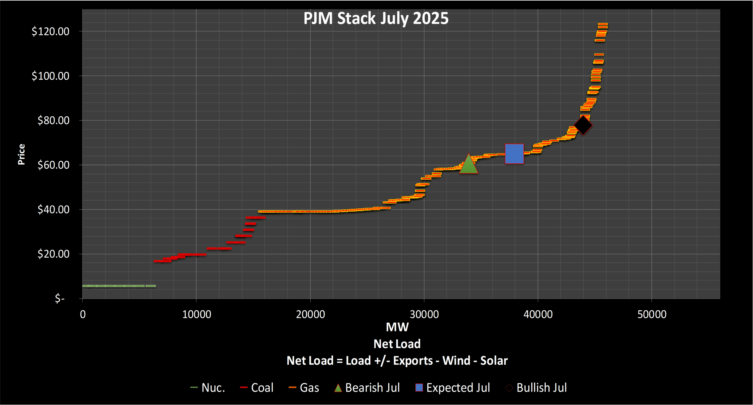 The market sentiment for July is more bullish than our view. To be fair July is generally the hottest month of the summer for the Mid-Atlantic & likely the reason for the market heat rate near our bullish scenario.