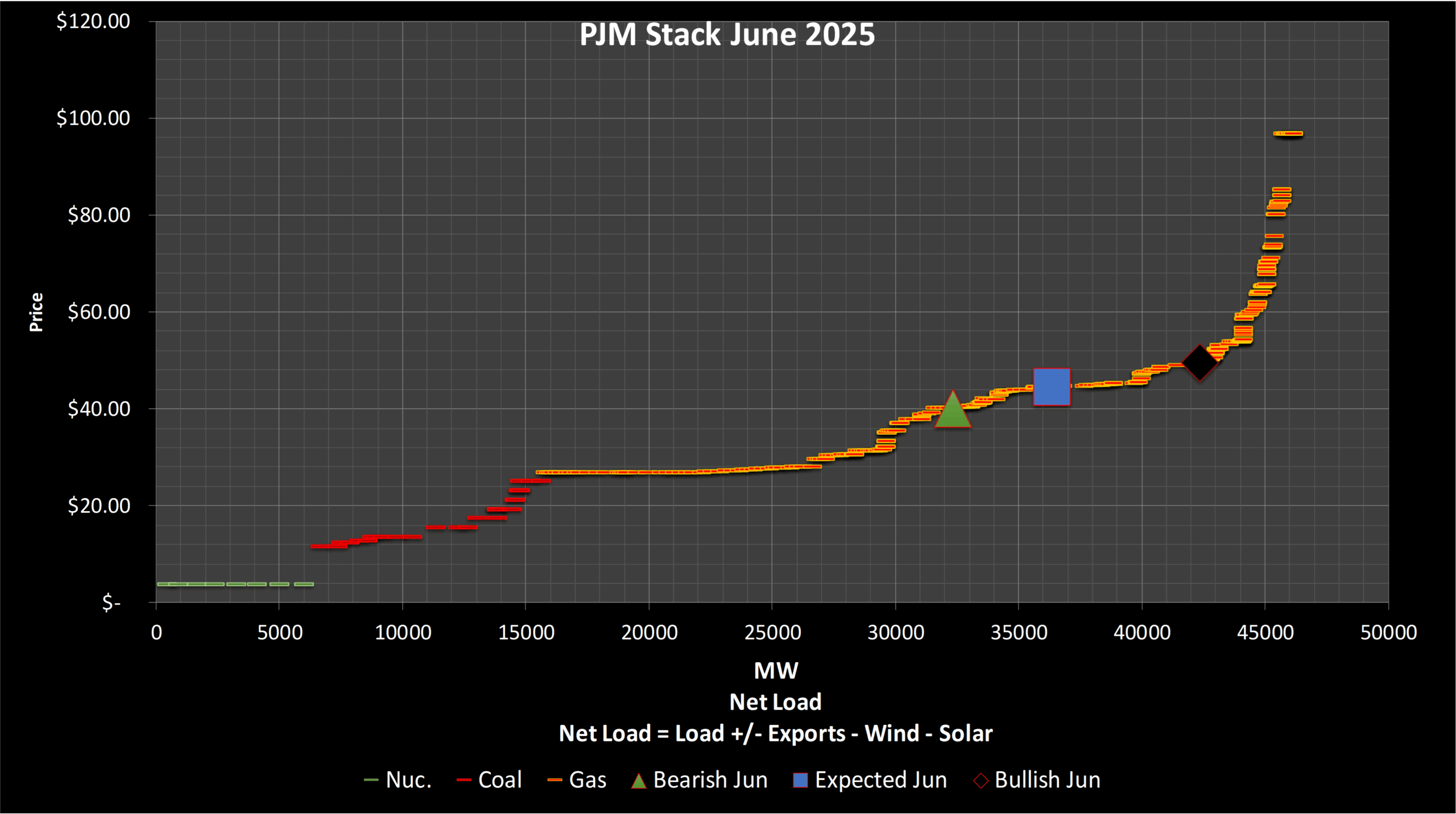 With that being said, our stack model shows any below average demand with strong renewables will quickly send heat rates sliding near our bearish scenario.