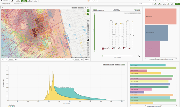 Enverus workflows are built on integrated upstream datasets within a single analytical environment, including:
