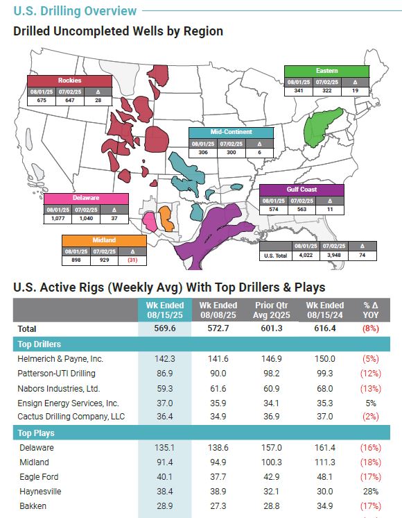 AUSTIN, Texas (Sept. 3, 2025) — Enverus, the most trusted energy-dedicated SaaS company that leverages generative AI across its solutions, has released its updated list of top drillers and customer rankings in the U.S., as well as detailed drilling rig analytics.