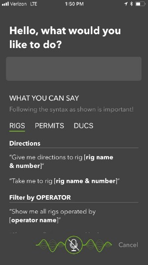 Use Enverus’s cutting-edge technology to get to the rig first using voice commands. The power of your voice filters for rigs, permits, DUCs and driving directions.