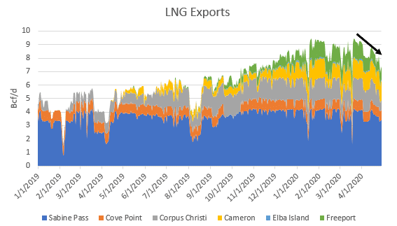 As the crude oil industry copes with the demand hit from COVID-19 and wonders when things will get back to normal, the US LNG export industry is also feeling the hit as global demand for the liquefied gas has diminished in the last month due to the pandemic. Just a little over a month ago, LNG exports reached an all-time high, with ~9.44 Bcf flowing to terminals. However, demand destruction has caused reduced flows to LNG terminals, leaving the month of April averaging ~8.12 Bcf/d of exports and yesterday showing ~7.37 Bcf of exports. Recently, some LNG importers in Asia and Europe, including Kogas, Tokyo Gas, CNOOC, Petronas, and Petronet, have announced deferrals in response to the COVID-19 demand fall out. As the world continues to get through the pandemic and begins to reopen, demand for LNG will rebound, but it will not likely rebound to pre-pandemic levels until at least late 2020.