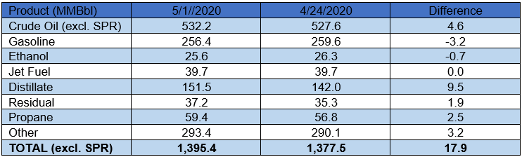 Crude oil prices continued its five-day rally through to yesterday’s close, with the June WTI contract settling at $24.56/Bbl. Futures have since trended lower in early morning trading. Nevertheless, further easing of the prompt contango structure is a promising sign that OPEC+ production cuts, shut-ins, and firming demand conditions are doing their part to rebalance the market. The slowing pace of commercial crude oil inventory builds in the United States is indicative of this, but there is still a lot of work to be done on the demand side of the balance before anyone can say with confidence that the market is completely out of the woods. As today’s EIA report shows, refiners could end up swelling product inventories if they ramp up crude runs faster than end-use demand is able to recover. While most of the oversupply focus to-date has been on gasoline and jet, the reported 9.5 MMBbl build in distillates raises concerns about broader macroeconomic weakness.