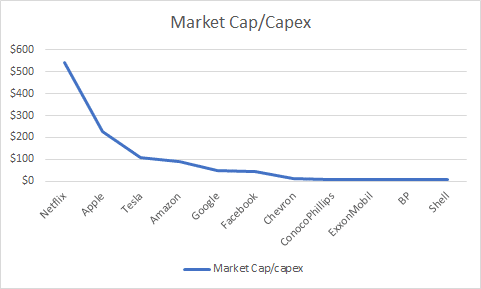 The disparity in intrinsic valuations is even more pronounced if you look at market cap as a function of capex.