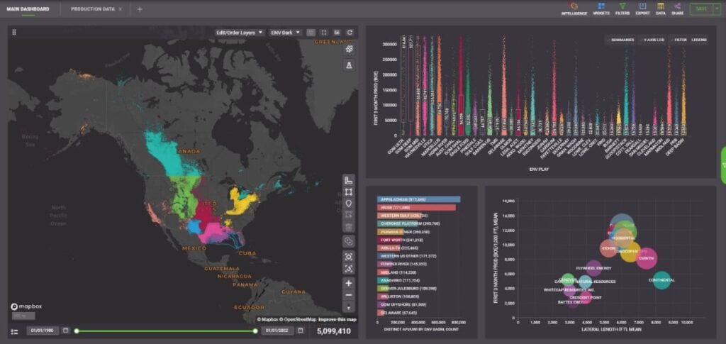 See well information in the well card/widget, create areas of interest on the map, import shapefiles, create custom calculations and import API lists.